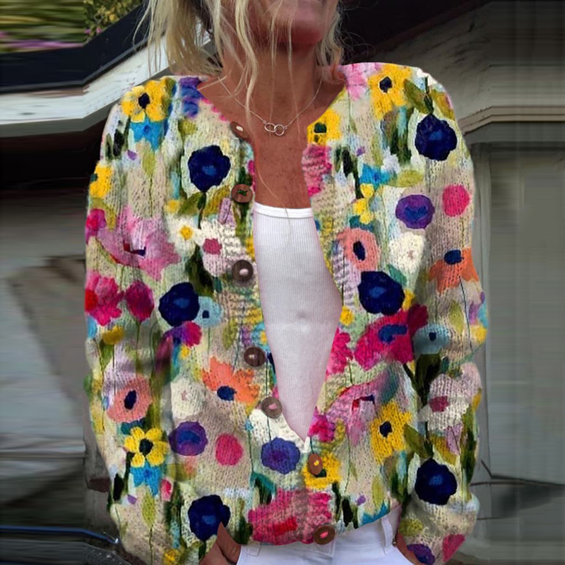 Vintage Floral Art Pattern Cozy Cardigan Sweater