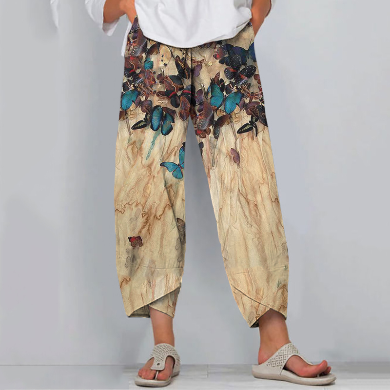 Women's Vintage Butterfly Art Print Linen Blend Pants