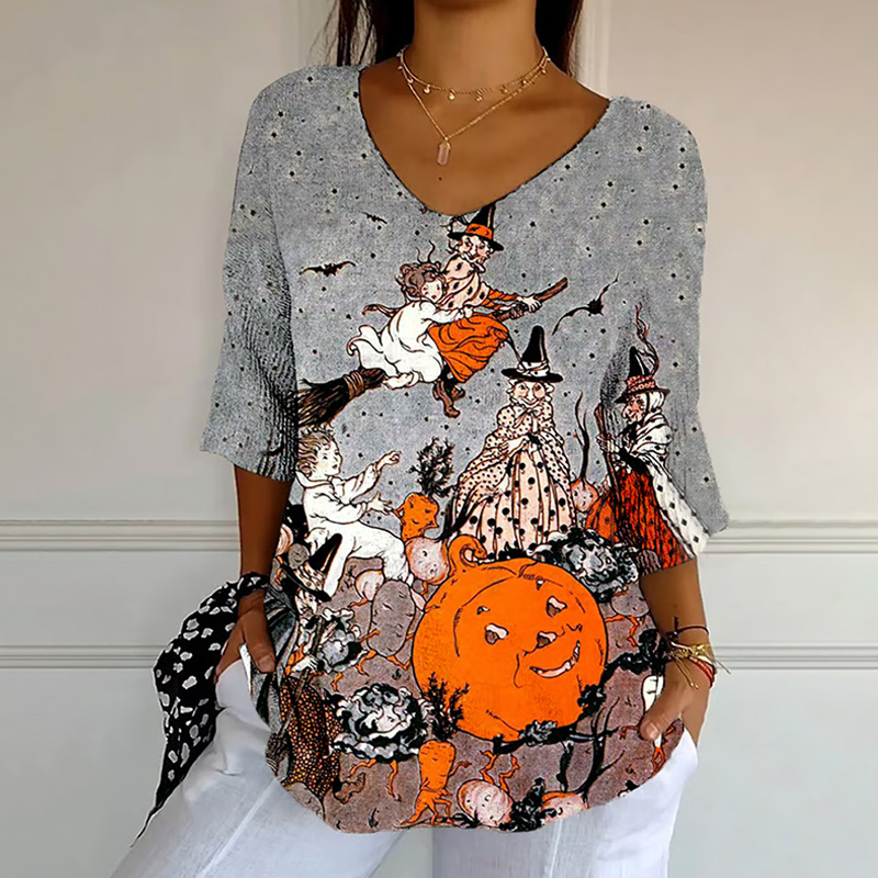 Women's Witch Art Design Print Casual T-shirt